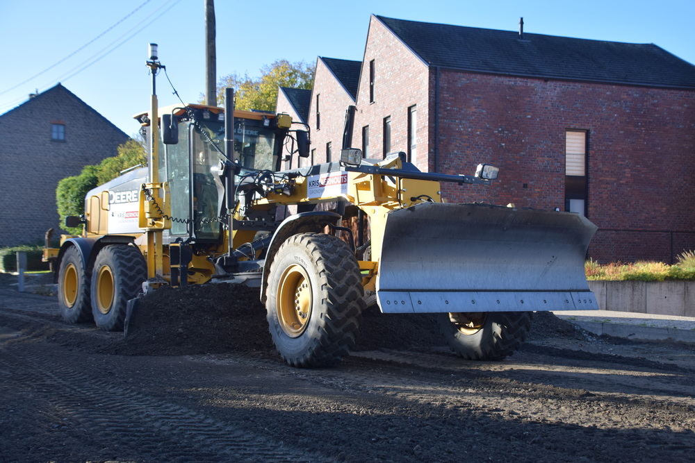 Kris Aernouts a travaillé plus de dix ans pour l’entreprise Hens, où il a découvert l’utilisation d’un petit bulldozer pour le nivellement. « J’ai vite compris que tout le monde ne disposait pas d’une telle machine. J’ai donc cherché un modèle compact et, en 2006, j’ai pu acheter un Hitachi de 4,5 tonnes. Je continuais à travailler comme indépendant pour Hens, mais j’avais de plus en plus de travail avec ce bulldozer. J’ai ensuite acheté un modèle de 7,5 tonnes, un John Deere 450J, ce qui m’a permis de modifier le Hitachi. La lame a été rétrécie, rendant la machine idéale pour l’égalisation de pistes cyclables ou de chemins piétons. Un tracteur équipé d’une lame de nivellement est ensuite venu compléter le parc. »