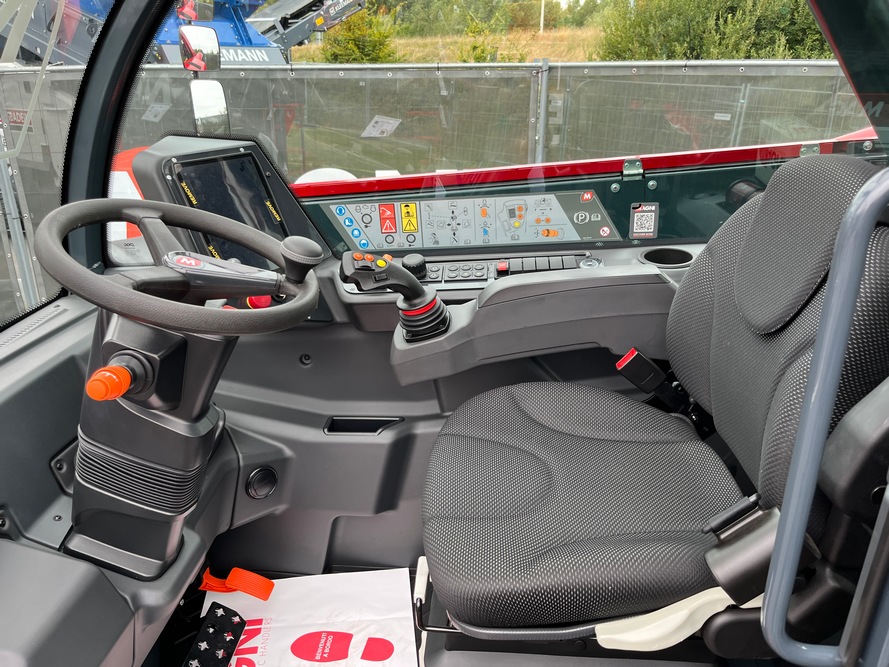 “Les commandes de la machine se veulent intuitives. Ainsi, par exemple, tout ce qui est représenté en orange est dédié à l’avancement. De plus, on retrouve une cabine pressurisée de série”, a déclaré Gaetan De Noyette. Accessible via l’écran tactile, le logiciel embarqué MCTS (Magni Combi Touch System) permet un contrôle total du télescopique grâce à une navigation par icônes.