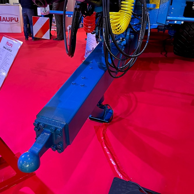 Une autre nouveauté concerne le système d’essieux directeurs forcés avec gyroscope. Il s’agit du dispositif SmartTronic qui est développé par ADR. Il utilise un capteur de position de type ‘‘gyroscope”, ainsi que le système Isobus du tracteur. L’Isobus du tracteur prend directement en charge le contrôle des essieux. Il permet d’éliminer la liaison mécanique entre le tracteur et la benne, facilitant ainsi l’attelage. De plus, cela a permis à Maupu d’élargir le timon. Une boule d’attelage K80 à 12 boulons peut ainsi prendre place. Ce système homologué fonctionne en mode automatique ou manuel. Certains utilisateurs belges profitent déjà du SmartTronic : “Il y a déjà 10 bennes équipées de ce système en Belgique”.