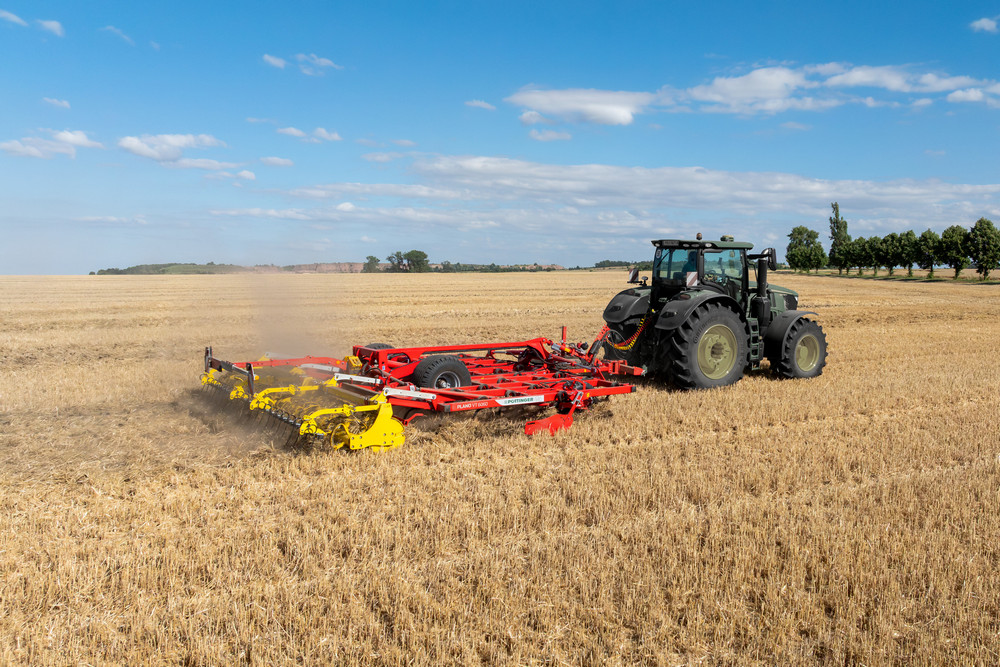 Le mode de fonctionnement du déchaumeur à dents superficiel Pöttinger Plano permet un travail superficiel et précis à une profondeur de 3 à 15 cm. « À l’heure des interdictions de substances actives et des résistances croissantes, les stratégies de lutte mécaniques sont rendues incontournables pour éliminer les adventices indésirables », explique le constructeur. « Le travail superficiel du sol est donc un élément essentiel des systèmes agricoles modernes. »