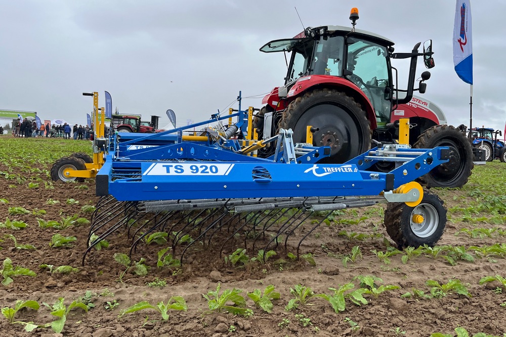 Des herses étrilles étaient aussi présentes à cette démonstration, dont la Treffler TS 920. Cet outil de désherbage allemand est utilisable pour un grand nombre de cultures, indépendamment de la largeur de semis et de l’inter-rangs. Une herse étrille travaille aussi bien entre les rangs que dans les rangs. Il est donc possible de l’utiliser aussi bien en pré-levée qu’après la levée de la culture.